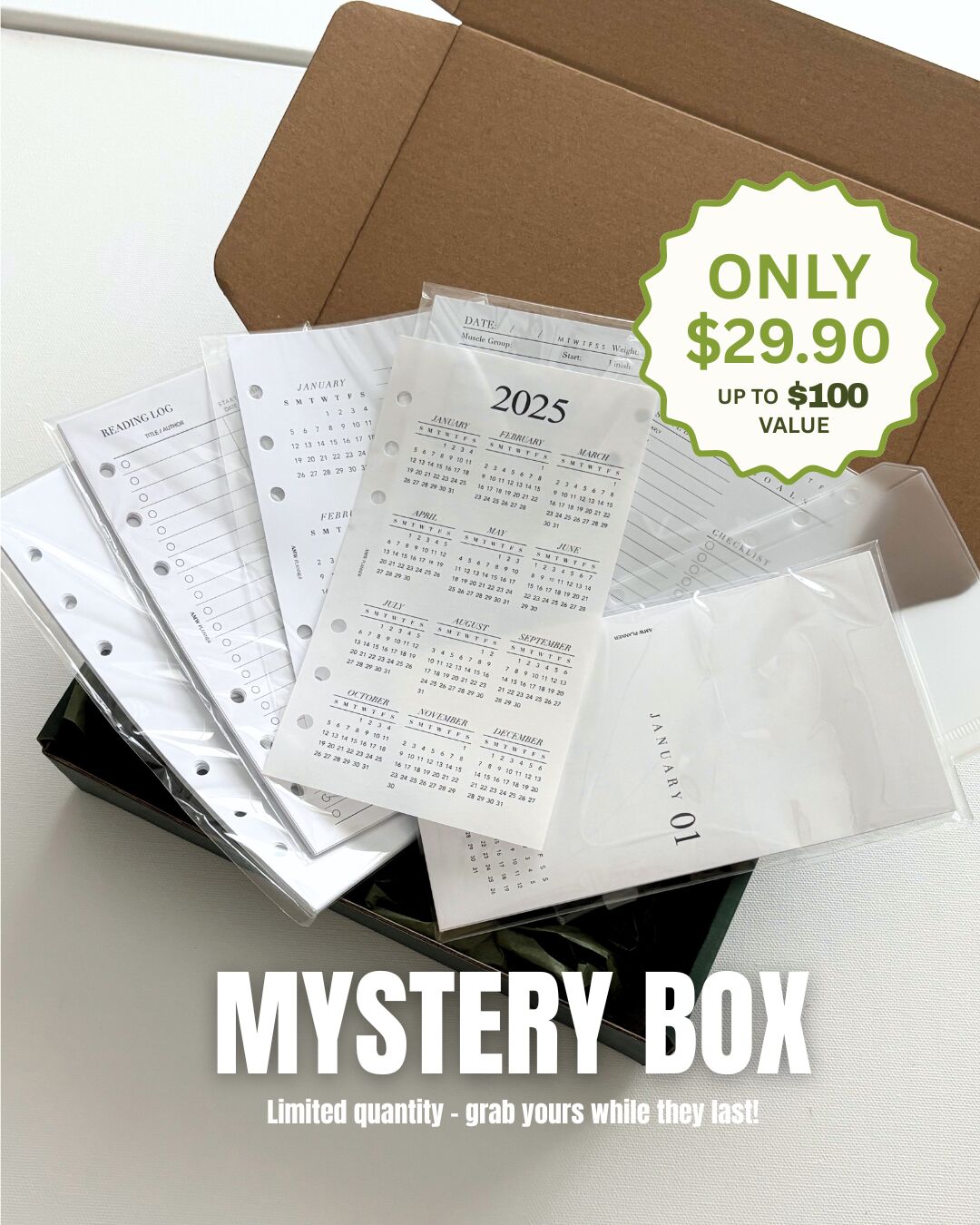 Are you ready to add a little surprise to your planning routine? Introducing our limited-edition Mystery Box β a curated collection of our most loved planner items and accessories, valued at $80β$100β¦ but ONLY at $29.90.